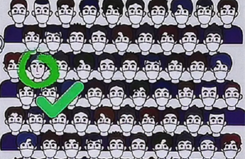 3、口罩藏在第3排倒数第3个人的关卡过身后,第三个没带口罩的全民人在屏幕右侧,